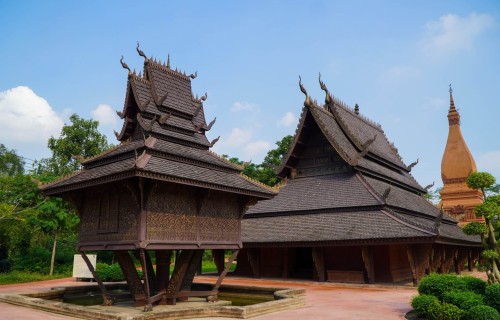 ถ่ายแบบจากจังหวัดสกลนคร เป็นปราสาทแบบศิลปะเขมรสมัยบาปวน ฐานเป็นศิลาแลง ตัวปราสาทก่อด้วยศิลาทรายสลักตกแต่งลวดลายตาคติฮินดู แต่เดิมเป็นเทวสถานต่อมาถูกปรับเป็นพระธาตุในคติของคนอีสาน ตามตำนานกล่าวว่าเป็นที่ประดิษฐานพระอังคารธาตุของพระพุทธเจ้า