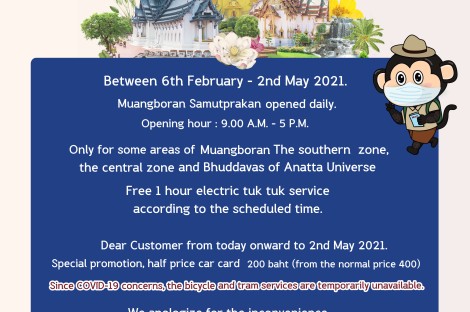 Between 6th February – 31th May 2021 Muangboran, Samutphrakan opened daily.