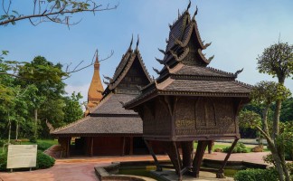 Muang Boran has constructed this particular scripture repository and wihan in Lan Chang style in order to demonstrate the unique artistic features of Lan Chang art. The extraordinary architectural style and design of the buildings are worth studying. The local architecture is ordinarily made of wood, the material often used by northeastern craftsmen. These architectures can hardly be seen today.